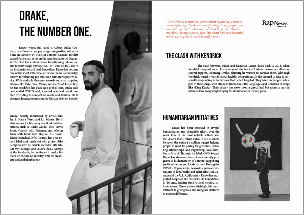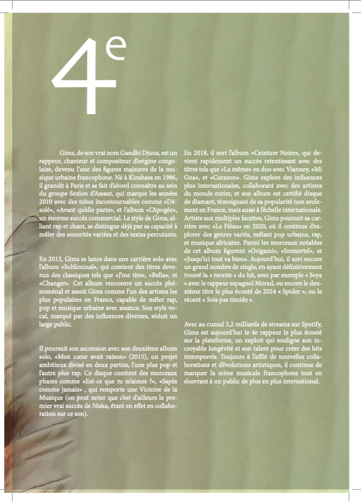 J’aime beaucoup cette matière, où j’ai pu par exemple faire un magazine complet sur le rap français, et un second en anglais avec les rappeurs américains. J’ai donc travaillé les visuels, effectué les recherches, écris les textes… L’aspect de création m’inspire, et cette matière est un réel plaisir, ainsi que ses projets.